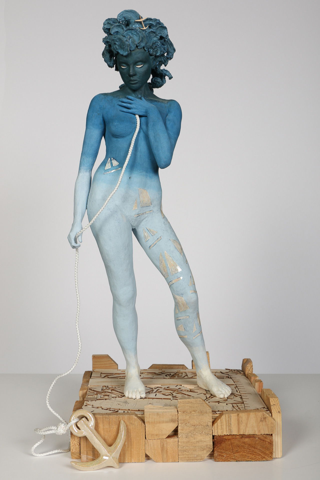 "All Your Ships Have Sailed" hand-built with clay, slip, terra sigillata, luster, rope and wood. 25x12